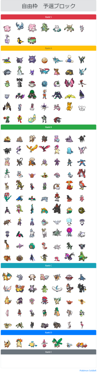 基本的にS(10匹)とA(40匹)の中から自由枠選ばれる想定で今後の記事は書いていきます。なのでBから下は次回以降登場しません。