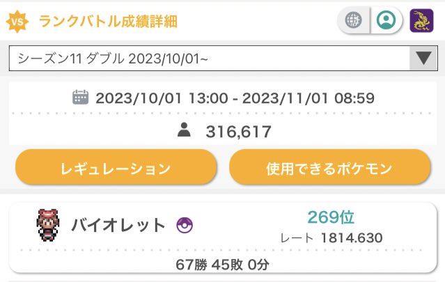 トドロクツキで意地でも最終3桁圏内に載せてやるという目標と、趣味のマイナー開発でイノムーをランクマで大活躍させられたのは今期ランクマやってたうえでのモチベになって楽しかったです。トドロクツキはやれるからな?
